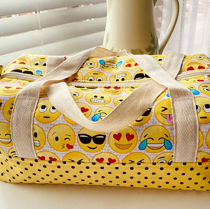 Mini duffle bag in 100% cotton and interfaced with fusible fleece for stability.