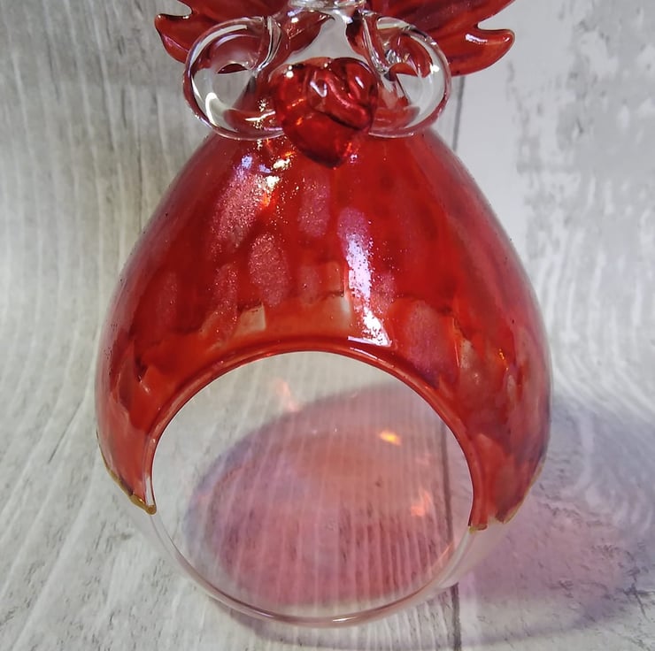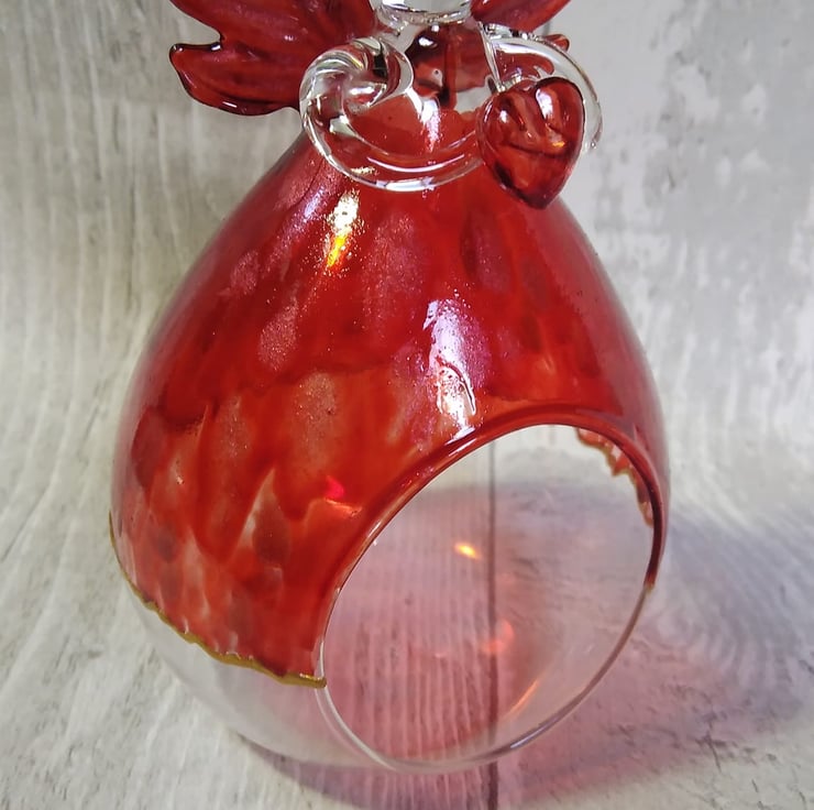 This beautiful angel tealight holder is hand painted with a rich vibrant red and then finished with shimmering rose paint. The bottom of her skirt is edged with gold outliner. She comes with a battery operated tealight and in a gift box. The perfect gift for Mother's Day or a Birthday or Anniversary gift. She would also be suitable for a memorial gift to remember someone special.