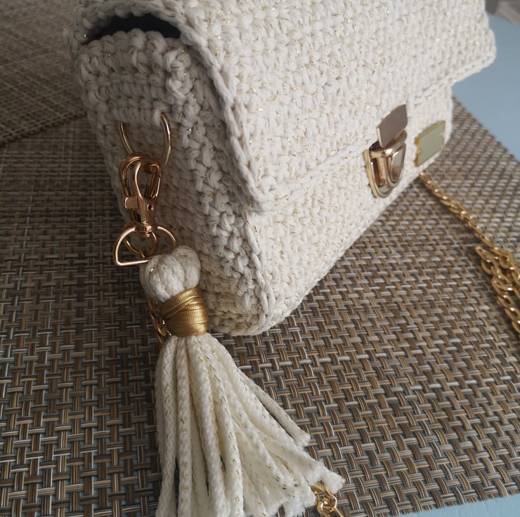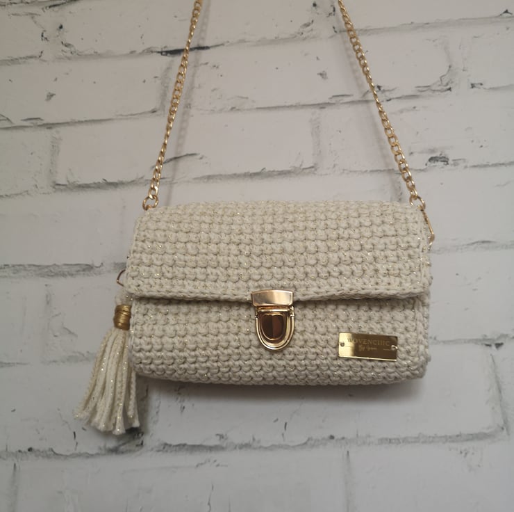Small clutch /shoulder bag with golden futures.