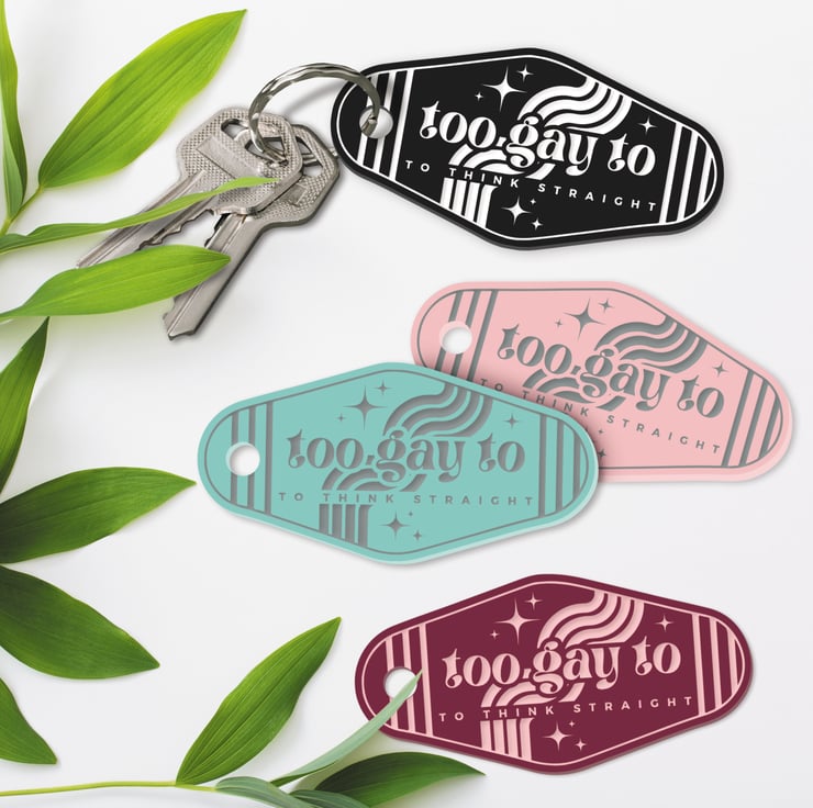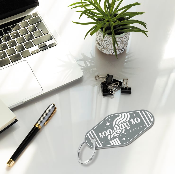Celebrate your unique identity with our bold and stylish keychain! The 'Too Gay To Think Straight' design adds a touch of humour and pride to your everyday essentials. Embrace individuality and spread positivity with this eye-catching keychain!