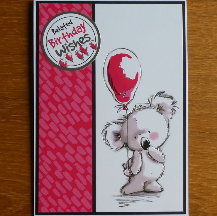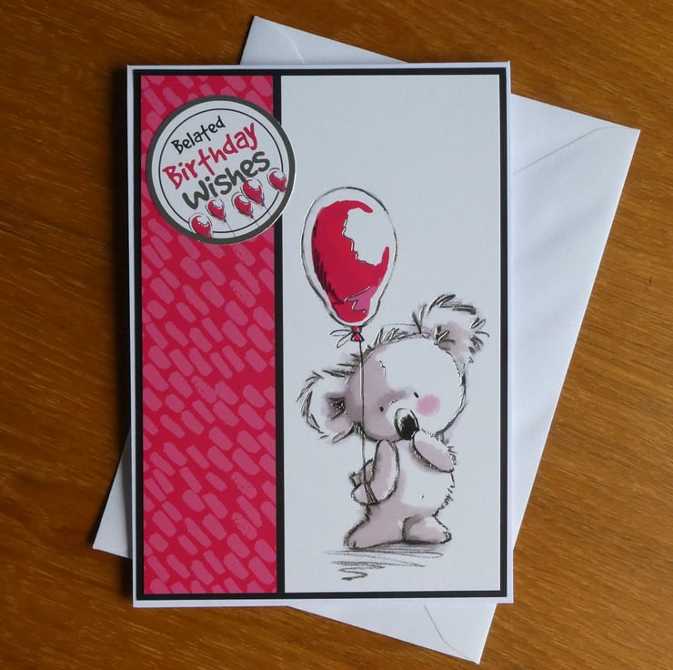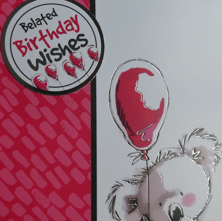 This belated birthday card with an image of a cute koala and the message 'Belated Birthday Wishes' would be ideal to send when you've remembered a birthday just too late!