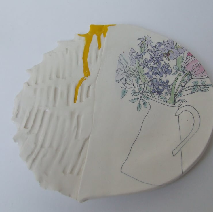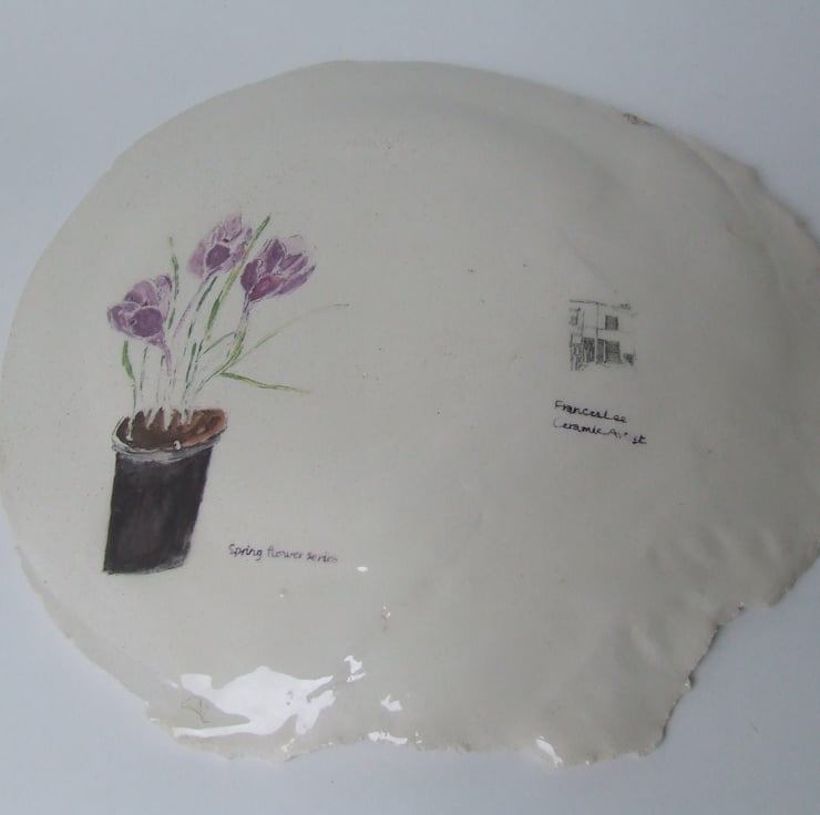 Upon retiring from a long and happy career as a physiotherapist, I embarked upon an applied arts degree. This led me to ceramics, where I have discovered a passion for combining glazed earthenware, lightbox drawings and gold leaf to create completely unique decorative pieces.