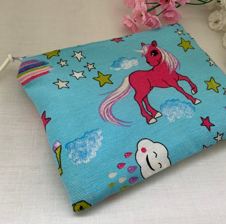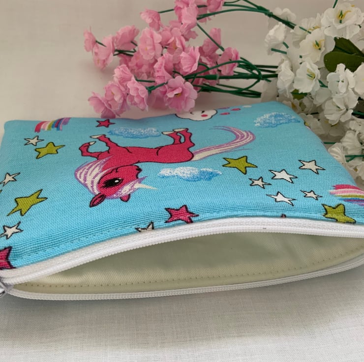 Childrens Unicorn Zipped Purse, accessory pouch, accessory bag.