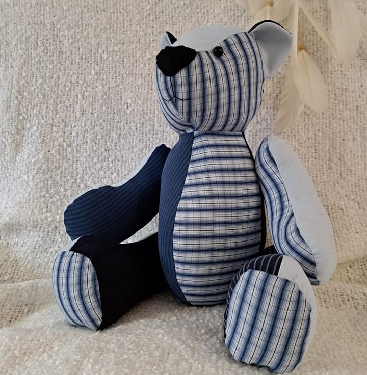 Memory animals are a beautiful way to treasure the memories of loved ones using their clothing or favourite items such as blankets or comforters or even a pets bedding.