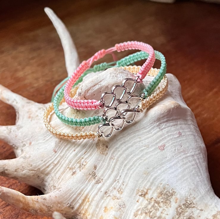 Make a statement with our Heart Charm Macrame Bracelet! This cute bracelet with romantic heart touch would make perfect little gift for someone special. The adjustable macrame design guarantees an ideal fit for any wrist size, and the long-lasting material ensures that this bracelet will be a treasured accessory for many years to come.
