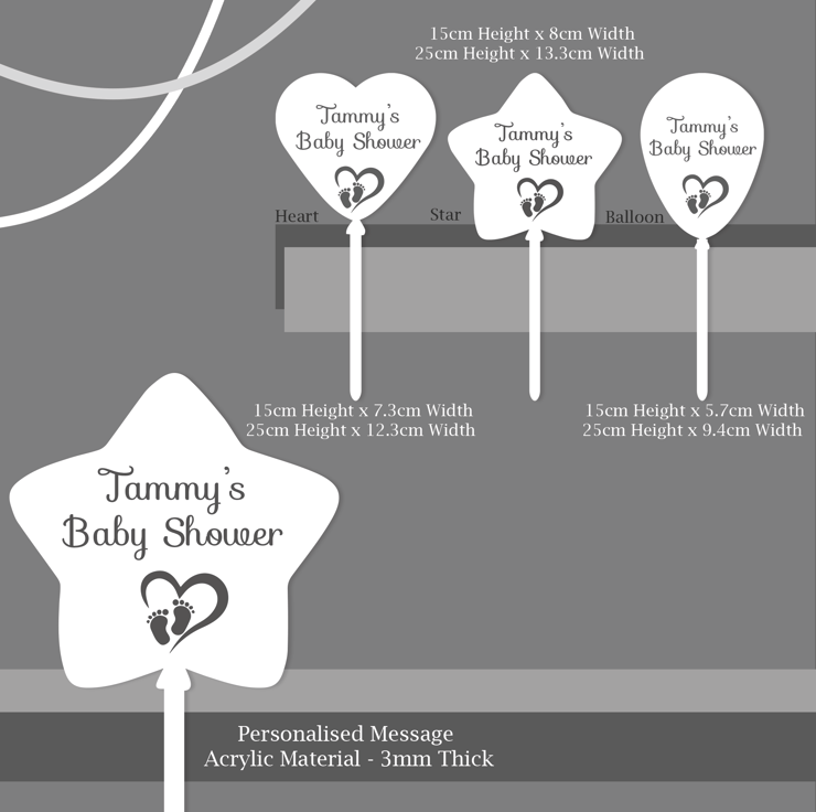 Celebrate the arrival of a bundle of joy with our personalised balloon shaped cake topper for a baby shower keepsake. Engraved with a name, this adorable balloon-shaped memento adds a touch of charm to your celebration. Capture the magic of new beginnings and create a cherished keepsake for the little one's journey ahead. A delightful way to welcome the newest member of the family.