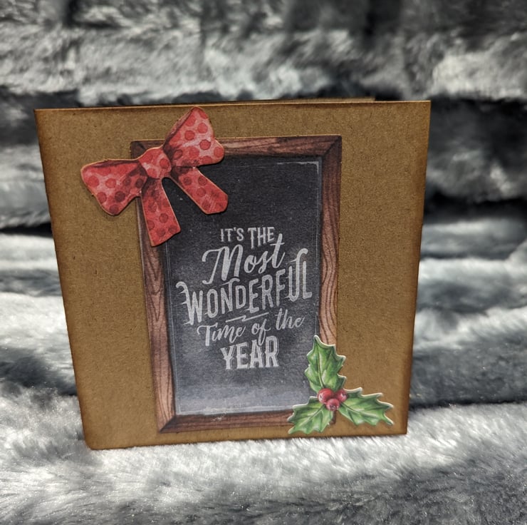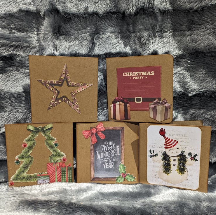 4x4 inch Christmas cards in craft stock, overlaid with Christmas inspired die cuts