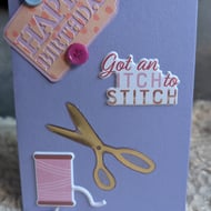 A6 landscape craft card stock with a simple die cut village scene bottom middle exposing silver sparkly card stock beneath.