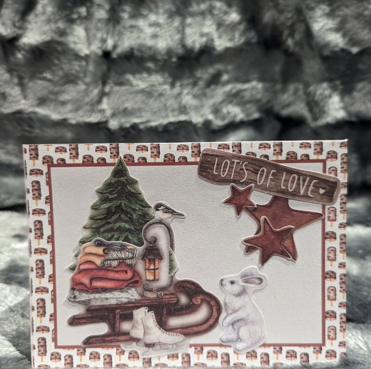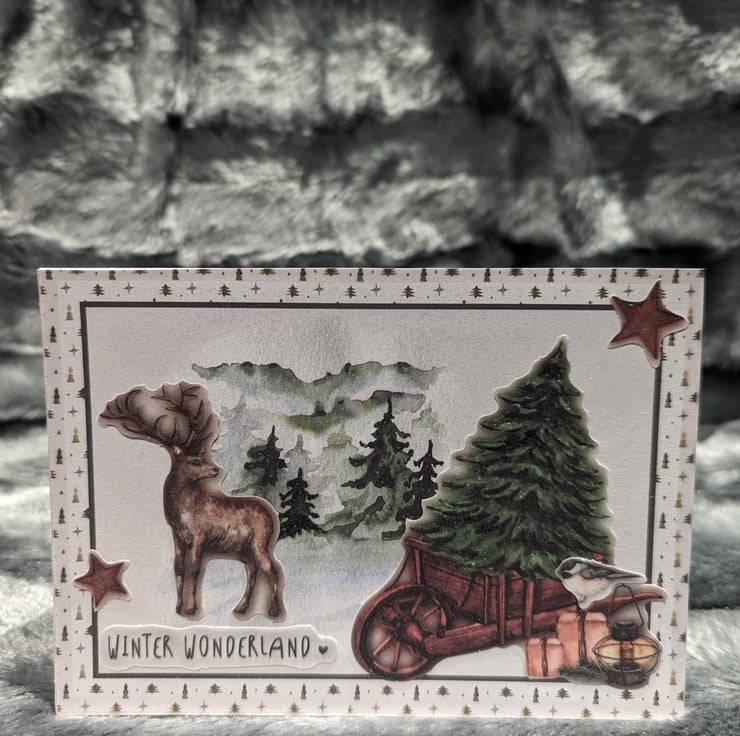 5-pack A6 and 5 1/4 x 5 1/4 white cards overlaid with a Christmas scene and covered with a frosty glaze