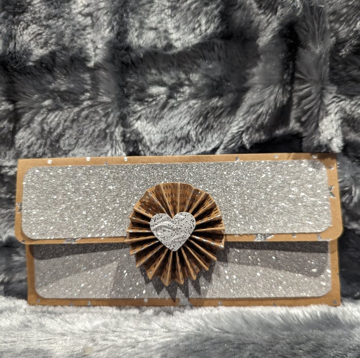 Craft card stock with silver stars and polka dots overlaid with silver sparkly card stock