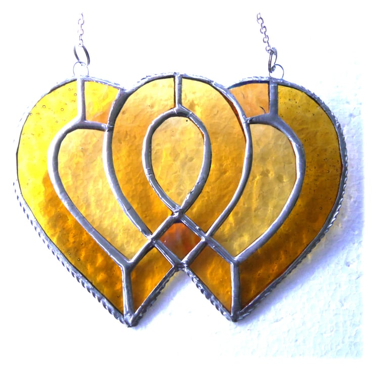 A heart design of 2 entwined hearts in elegant shades of gold.