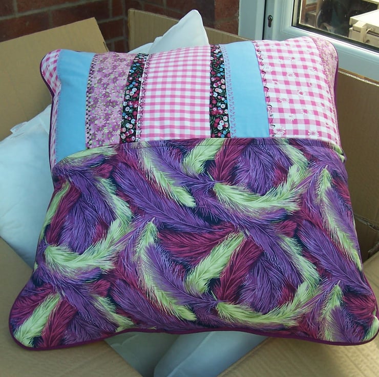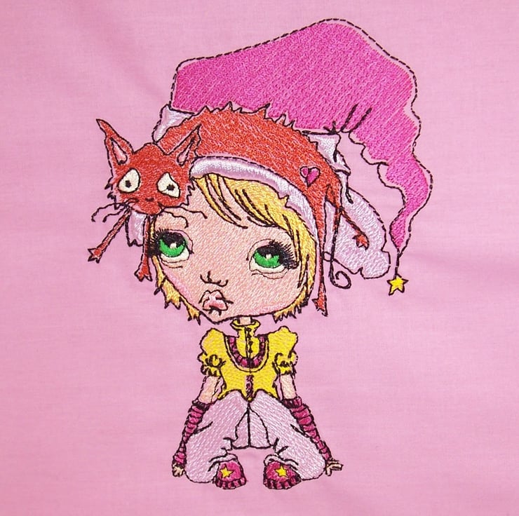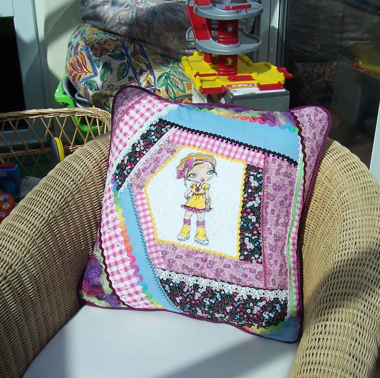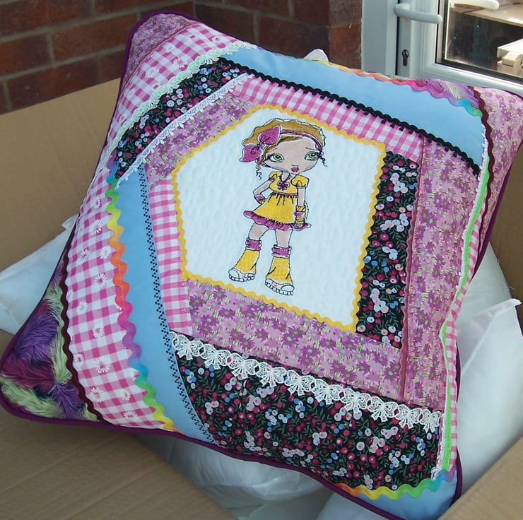 These embroidered fabric pieces are odd sizes but they are from the same set of designs in another of my listings, Melancholy Girls. This means more opportunities to make matching cushions, pillow covers, play-mat etc. The last four of my pictures show a nice example of a large cushion using one block and lots of my own stash. Do your own thing.