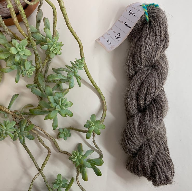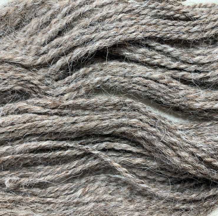 Hand spun natural alpaca. A soft, heavier weight yarn and super cosy.