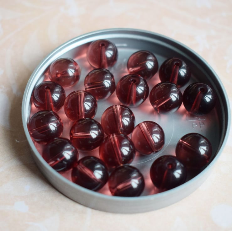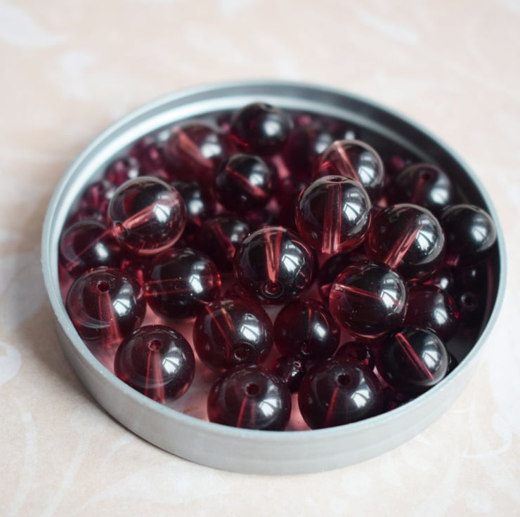 This is for 60 round glass beads in a lovely plum purple colour. There are