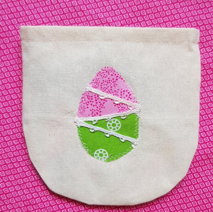The bunting is supplied with it's own little calico bag, decorated with a little egg.