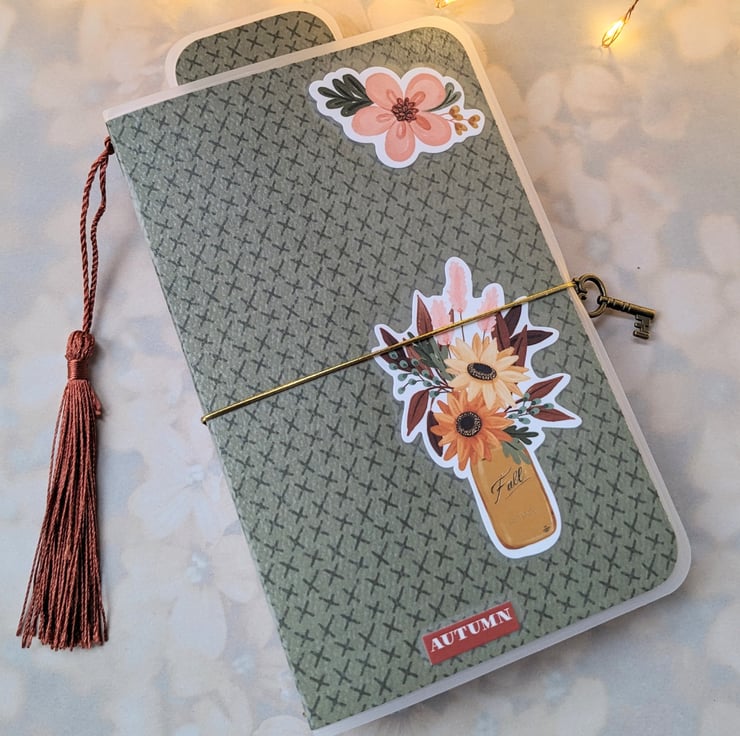 It measures A6 in size (6x4 inches ) and has a three quarter inch spine.