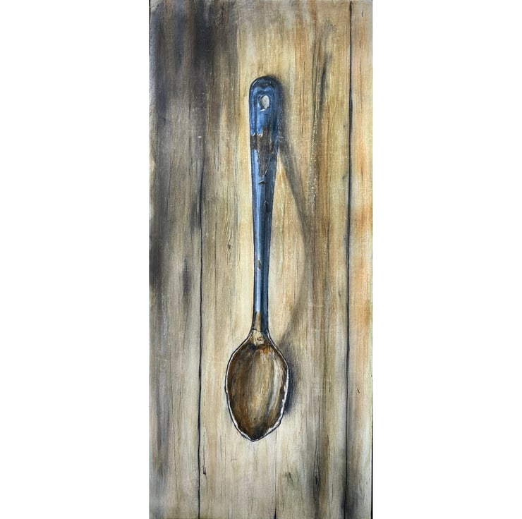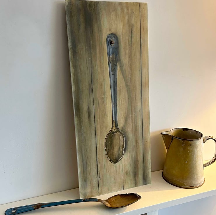 I found this old blue stiring spoon in an antiques shop and had to paint it as I love painting old rusty items.