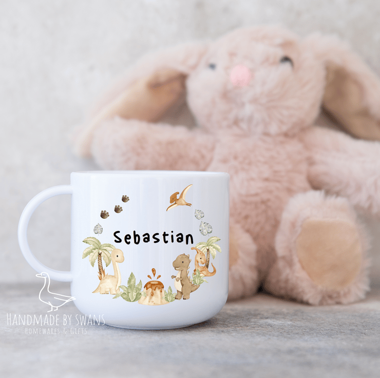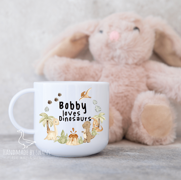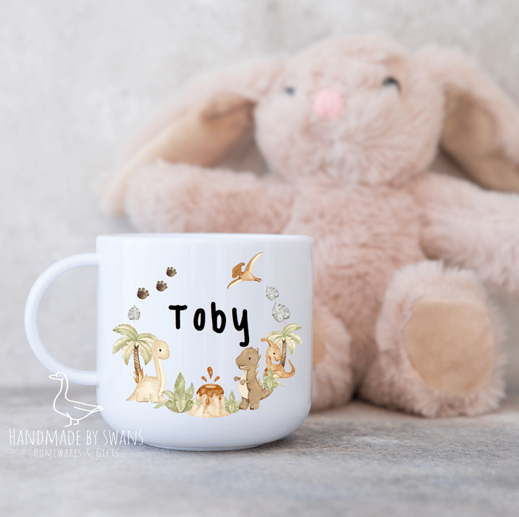 Personalised Child’s polymer mug with really cute little dinosaurs