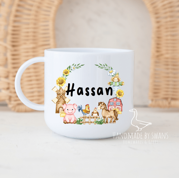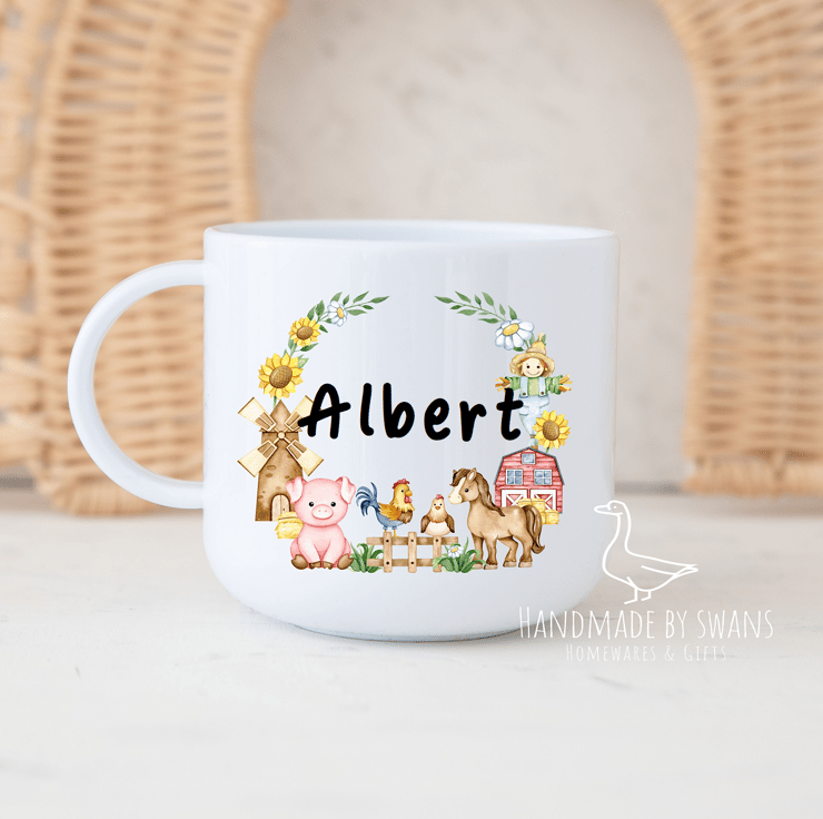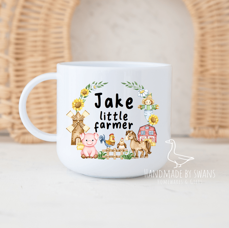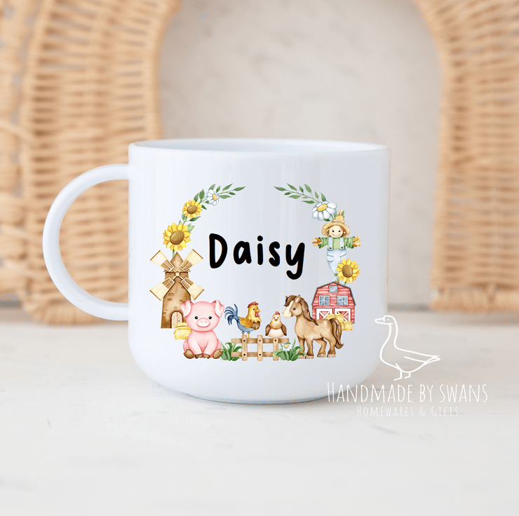 Personalised Child’s polymer mug with lovely farmyard wreath
