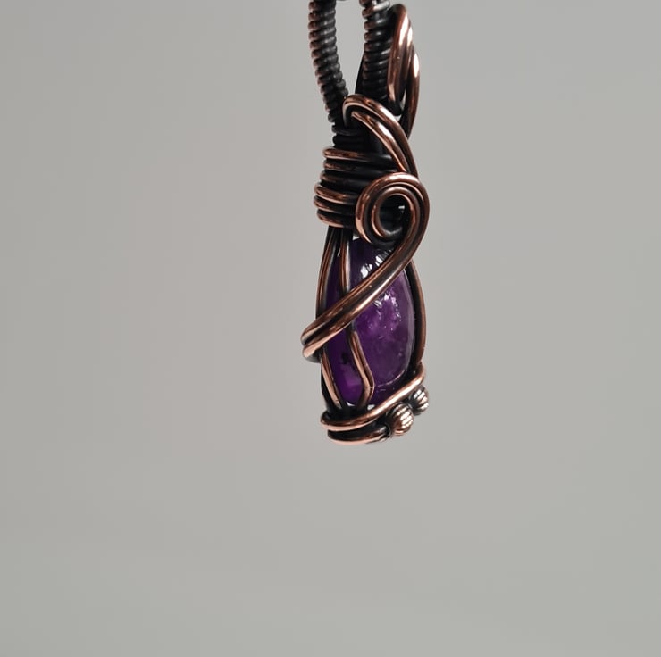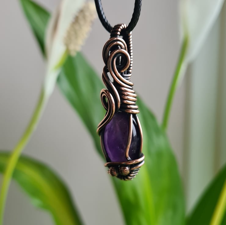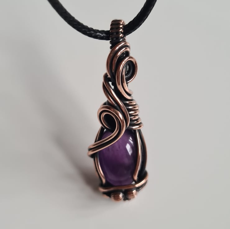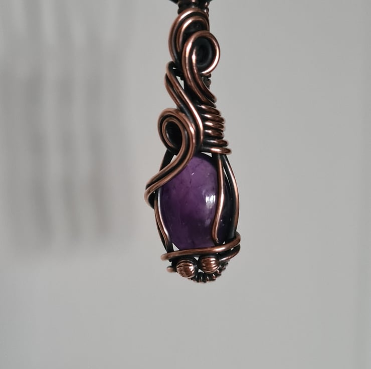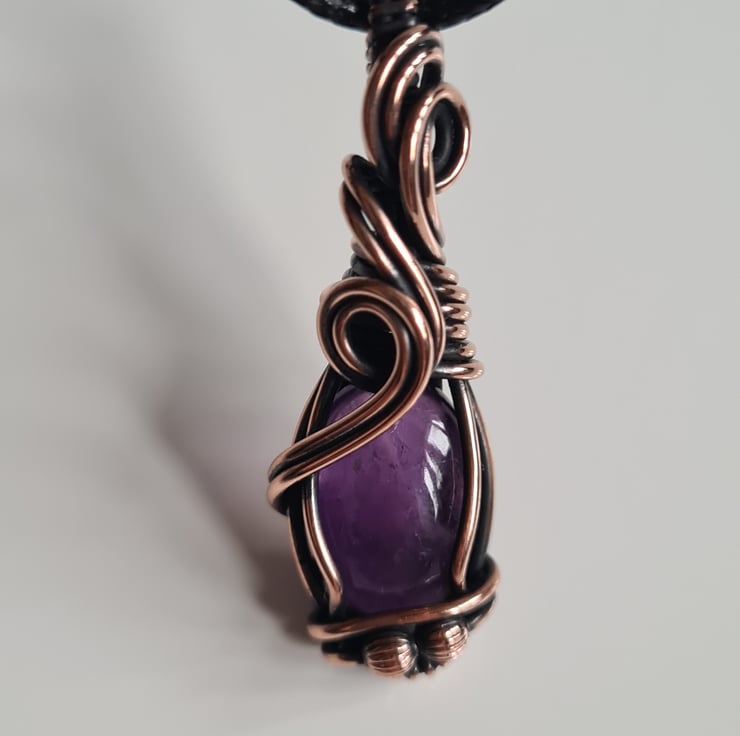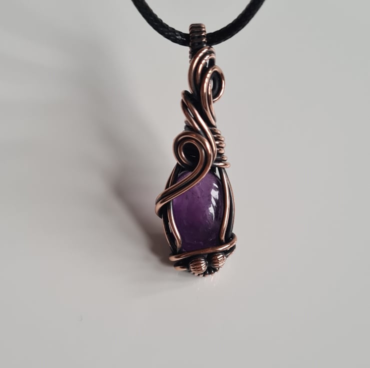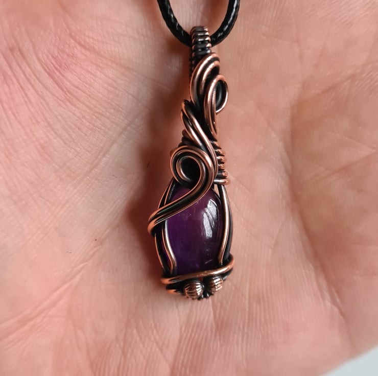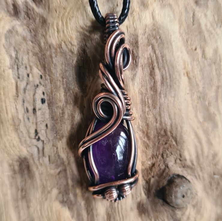 I have made this pendant using the most beautiful top quality Natural Amethyst, which I have encased in copper and then antiqued and polished for the final effect into this unique design. This really is a high grade, stunning stone and the colour is a beautiful tone of purple.