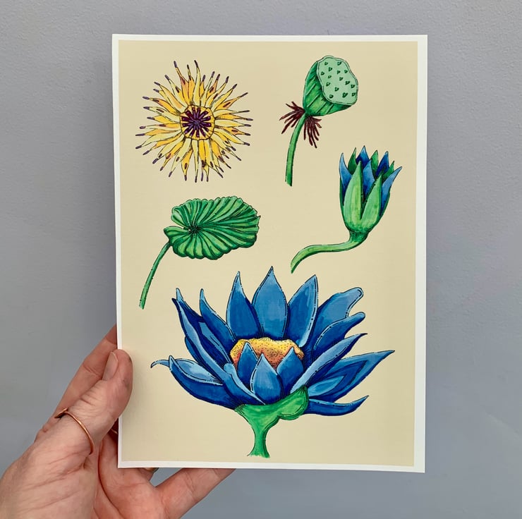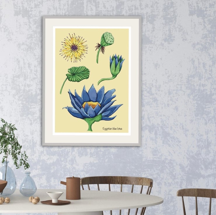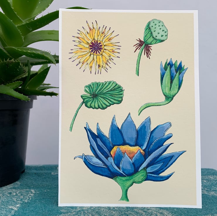 An archival print of my gouache and ink painting of the Egyptian blue lotus flower.