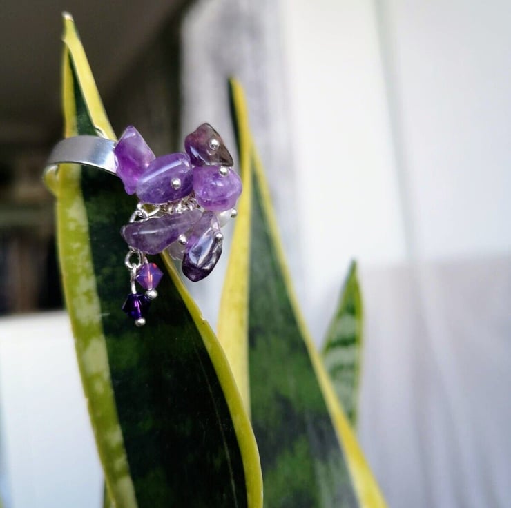 Amethyst Drop Earrings Ring Gemstone Freshwater Swarovski Earrings