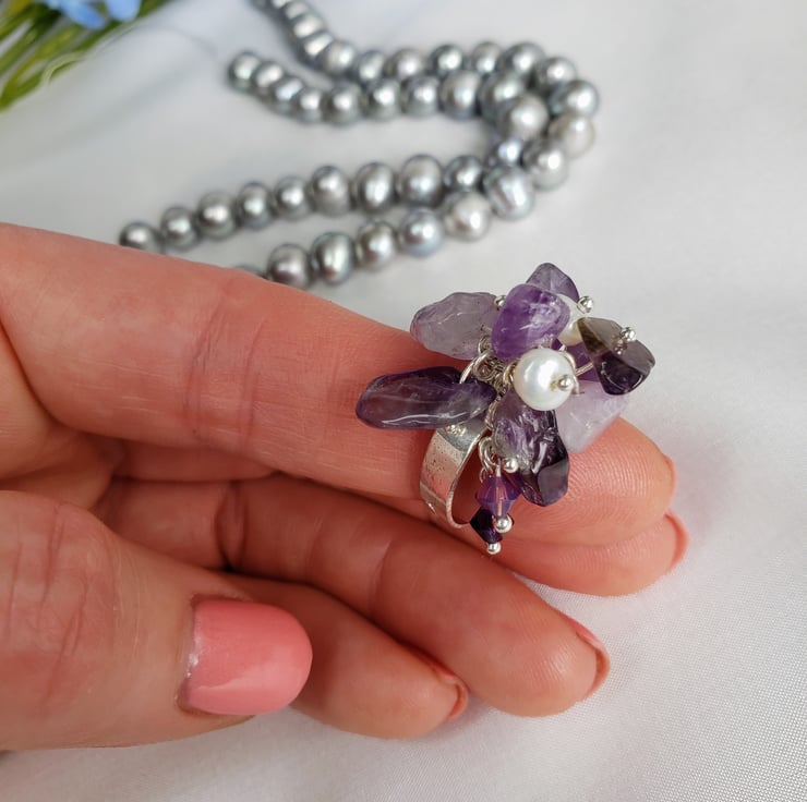 Also you can purchase adjustable ring, that was made in silver plated findings and mach silver earrings.