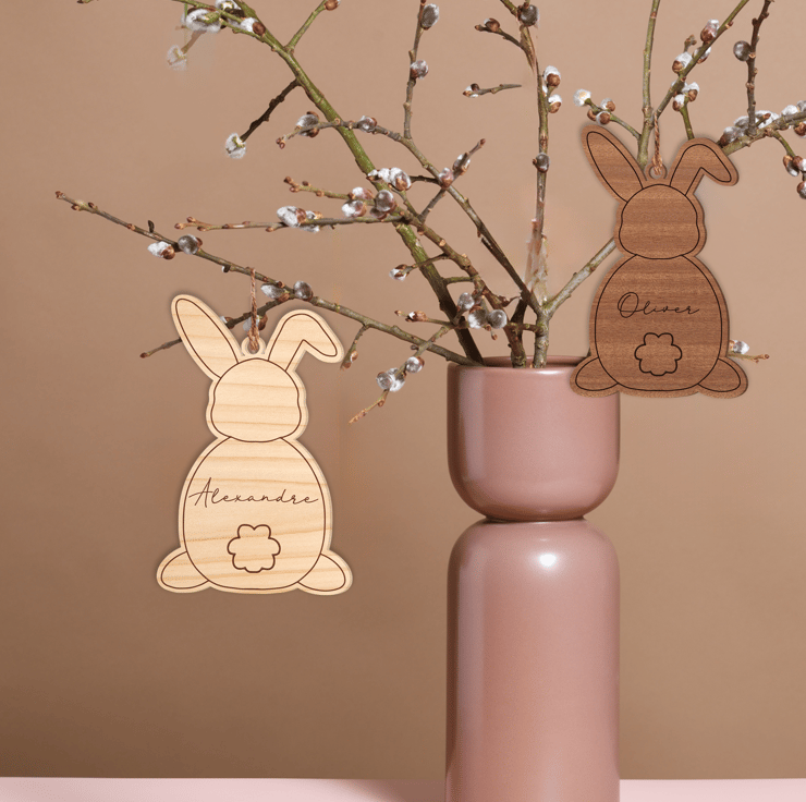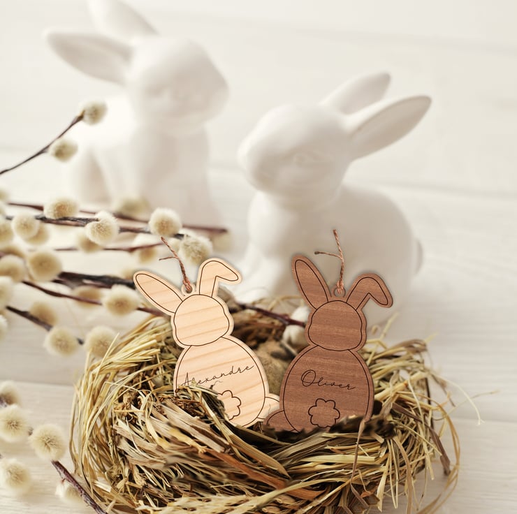 Welcome to our charming collection of personalized wooden Easter tags! Add a touch of rustic elegance to your Easter décor with our adorable bunny-shaped tags. Crafted from high-quality wood, each tag is meticulously cut and engraved with care.