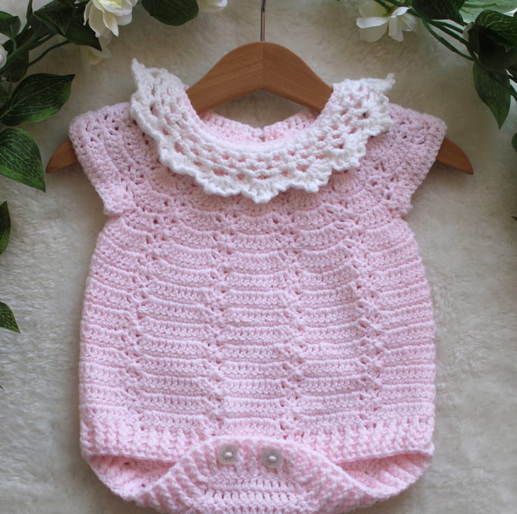 A beautiful short sleeved romper that is perfect for that new little girl in your life.
