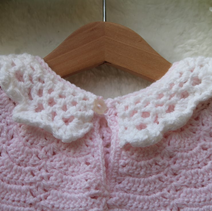 Features a beautiful stitch design throughout, a lace collar and generous ribbing around the legs to stretch as needed around the legs.