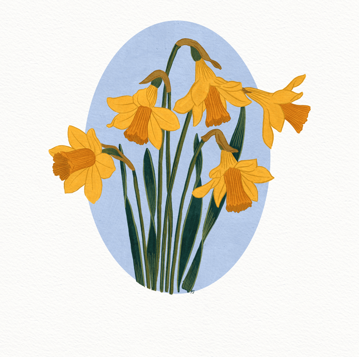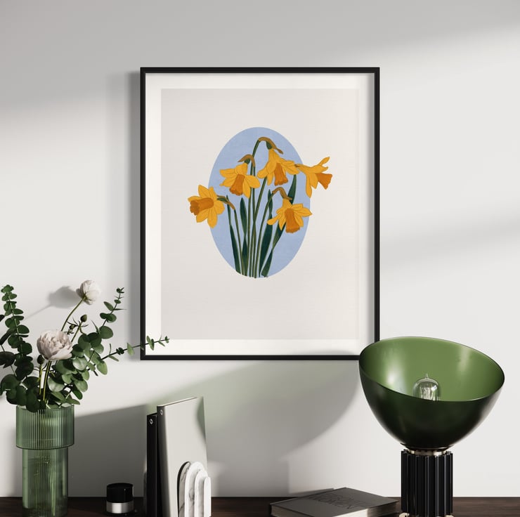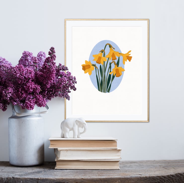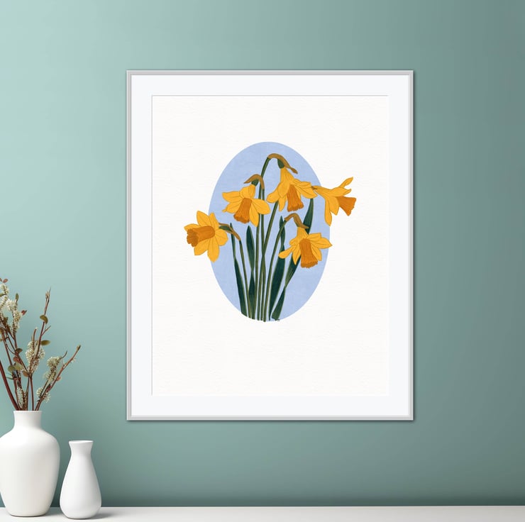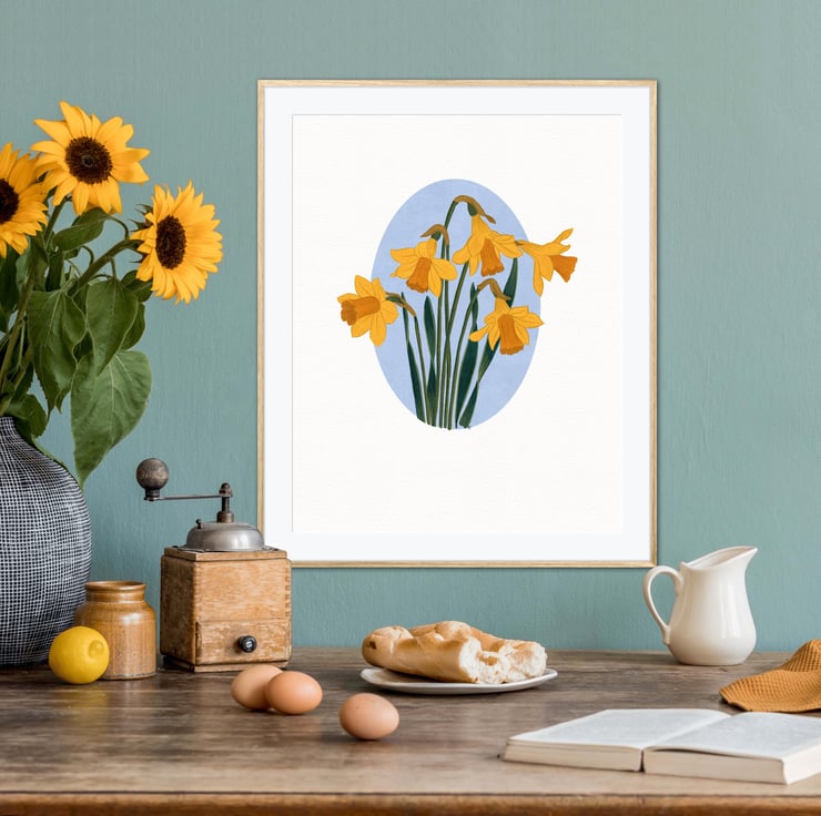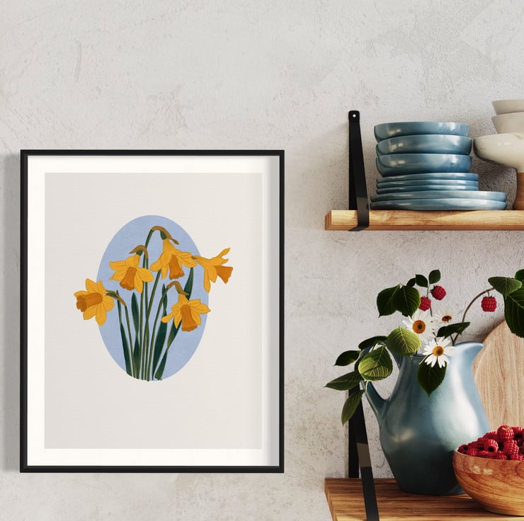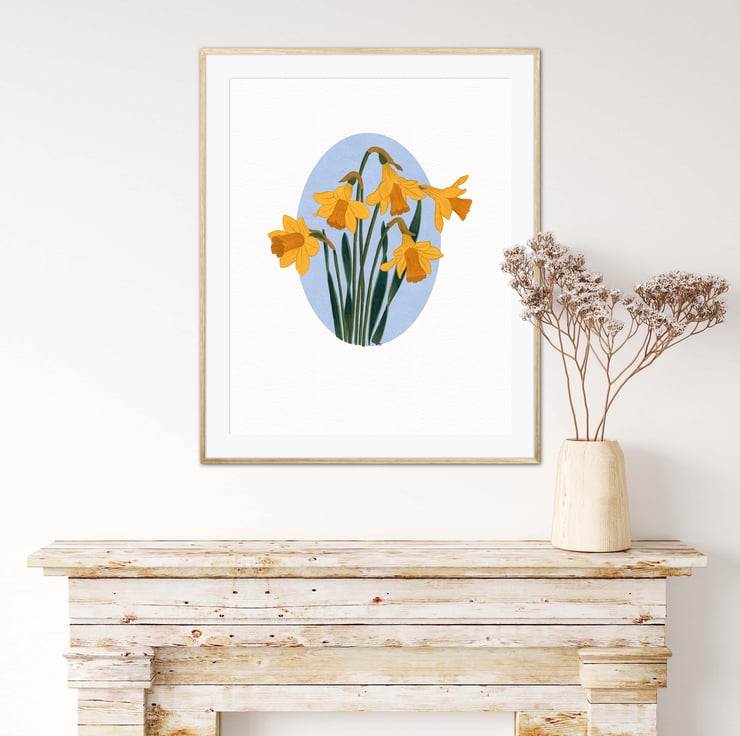 This stunning A4 gouache art print on archival matte paper showcases a gorgeous daffodil illustration, perfect for any lover of floral illustration art prints.