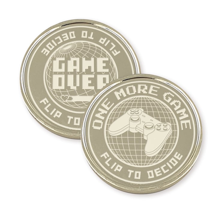 The perfect accessory for every gaming enthusiast! Engraved with the words "One More Game" on one side and "Game Over" on the other, this coin is the ultimate decision-maker for your gaming sessions. Flip it to determine whether it's time for another round or to call it a night.