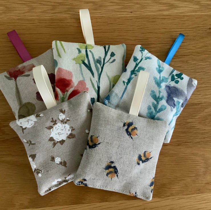 Subtly scent your wardrobe or drawers with these beautiful handmade lavender bags. Lavender is a natural remedy which can help ease sleeplessness, just pop under your pillow to aid a restful nights sleep. Each bag is generously filled with 100% dried Provence lavender and has a useful ribbon loop for hanging.