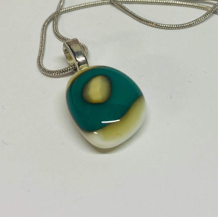 Introducing my handmade glass necklace, where cream and green come together in a simple but effective piece. Whether you're attending a special event, or adding a touch of luxury to your eveyday outfits, this necklace is sure to turn heads and spark conversation.
