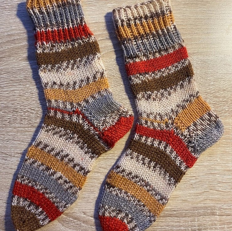 My husband wanted me to knit him some warm socks, as he could not find any in the shops that fitted him perfectly, so I made a few attempts from vintage knitting patterns, until I came up with a design that suited. Since then, I have tried many different yarns and two sizes, so I can wear some as well and they have been tried and tested by many friends and family members.