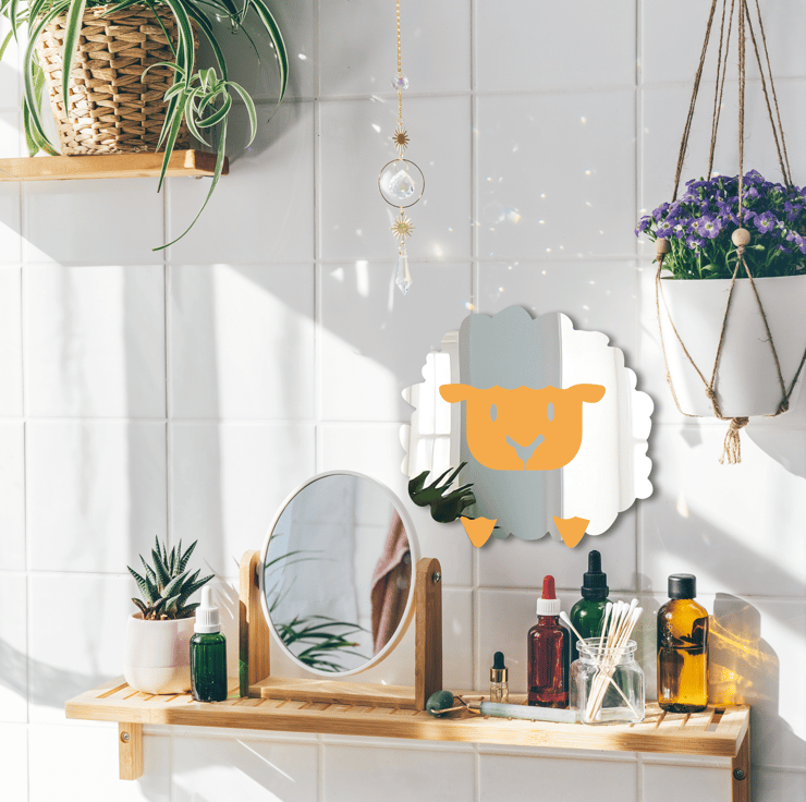 This charming mirror captures the essence of light, featuring a cute sheep design with a playful expression. The fluffy contours of the sheep's form add a touch of coziness to any space, creating a mirror that's not just functional but also an adorable piece of decor. Bring a touch of pastoral charm into your home with the Sheep Mirror, where your reflection is greeted by the endearing presence of a friendly, fluffy friend.