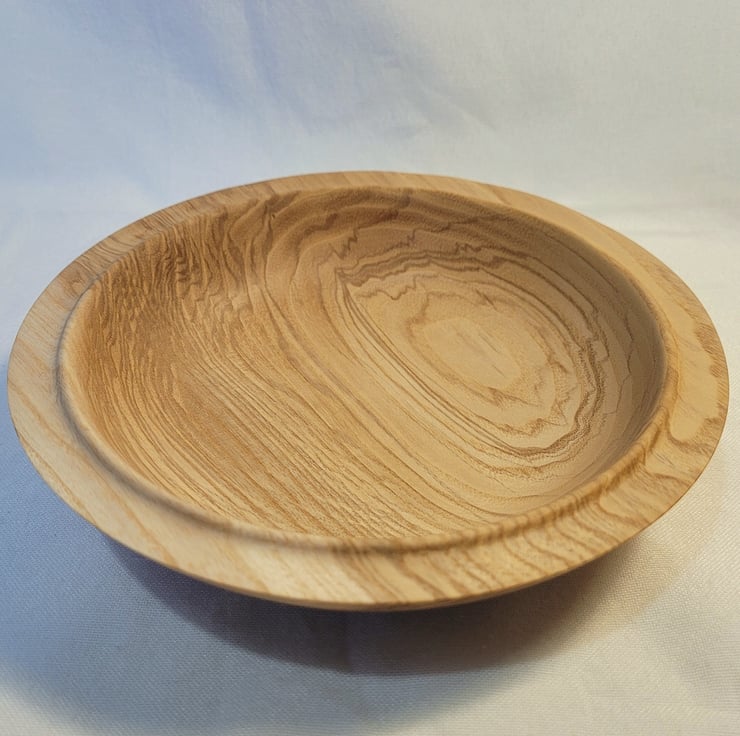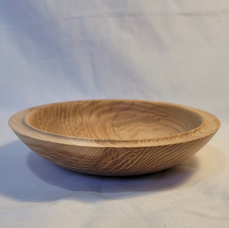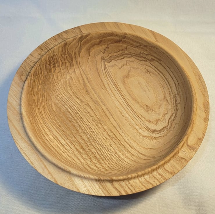 Olive Ash bowl, 178 x 40mm (17.8 x 4.0cm), Medium sized Olive ash bowl, nicely curving with a flat rim and a bead on the inner edge. Swirls and loops of milk chocolate brown on a light brown background. Would be ideal for storage or food, salad or nibbles.
