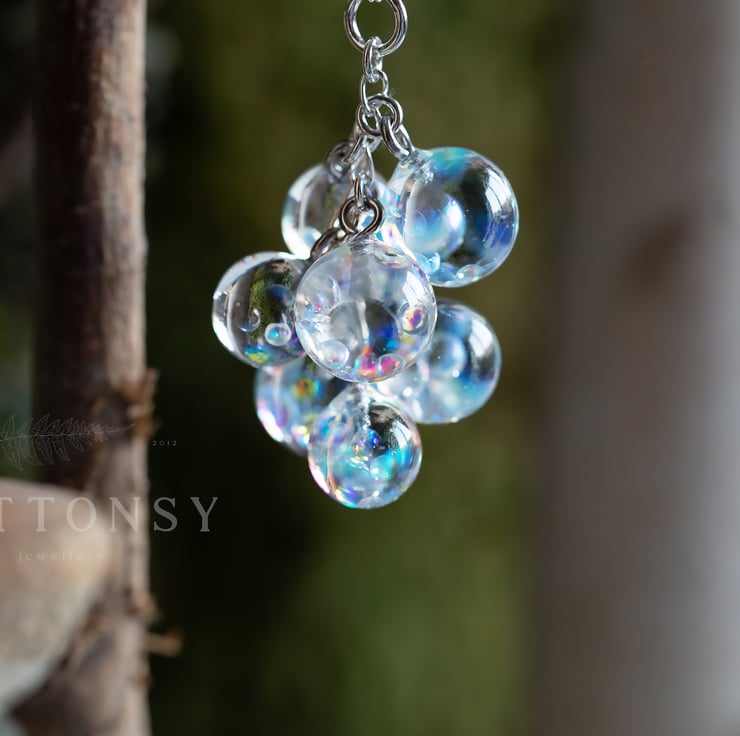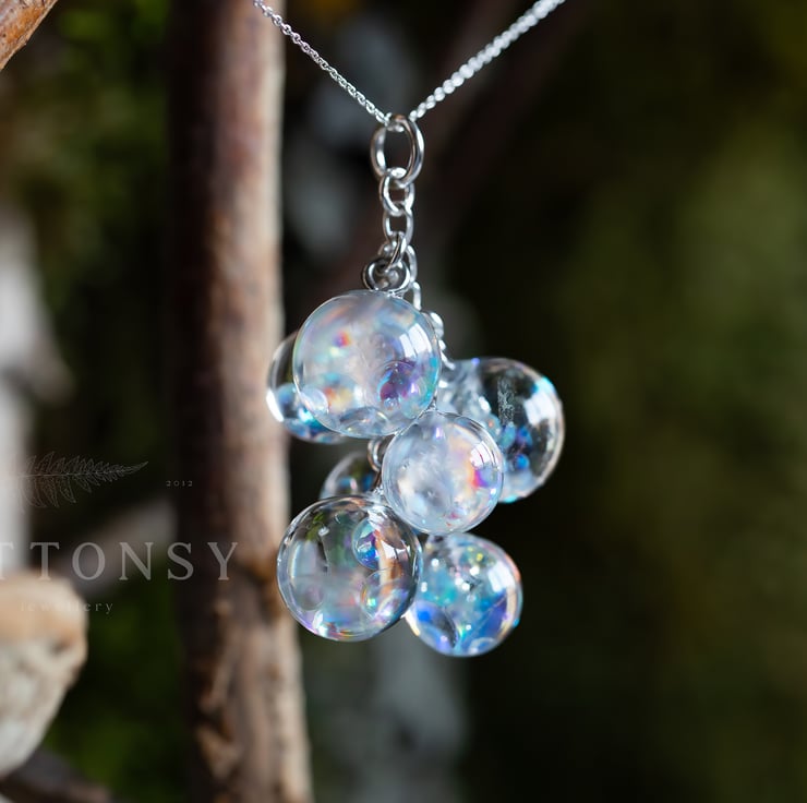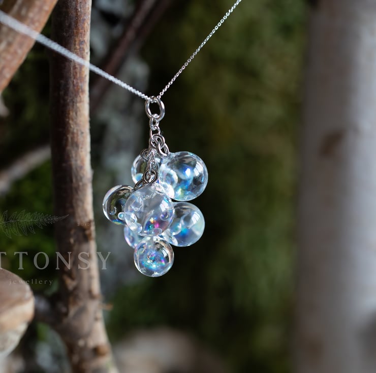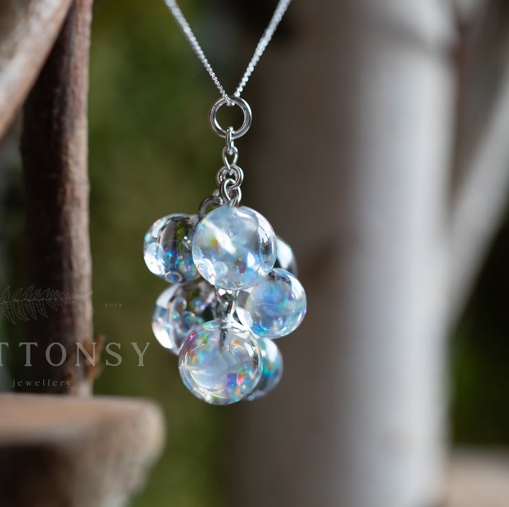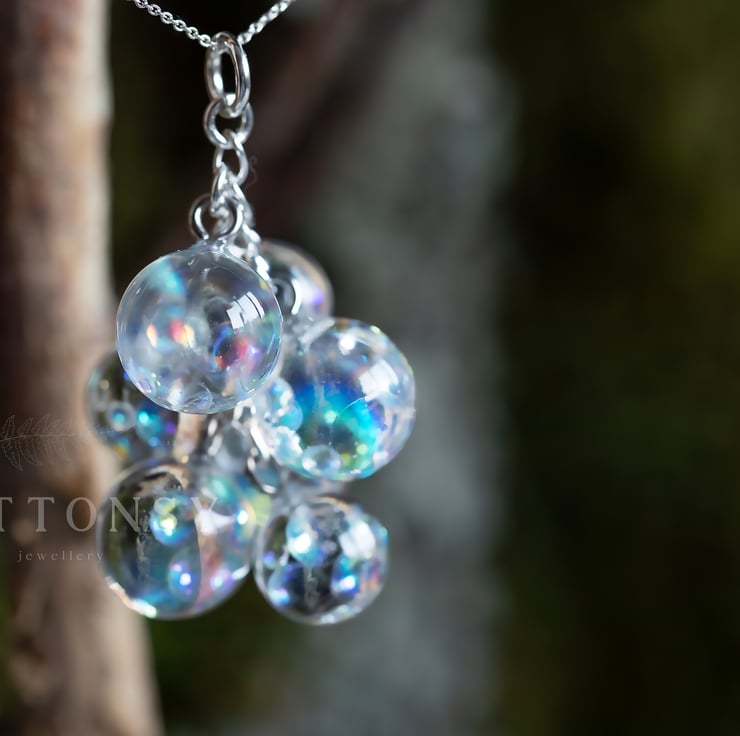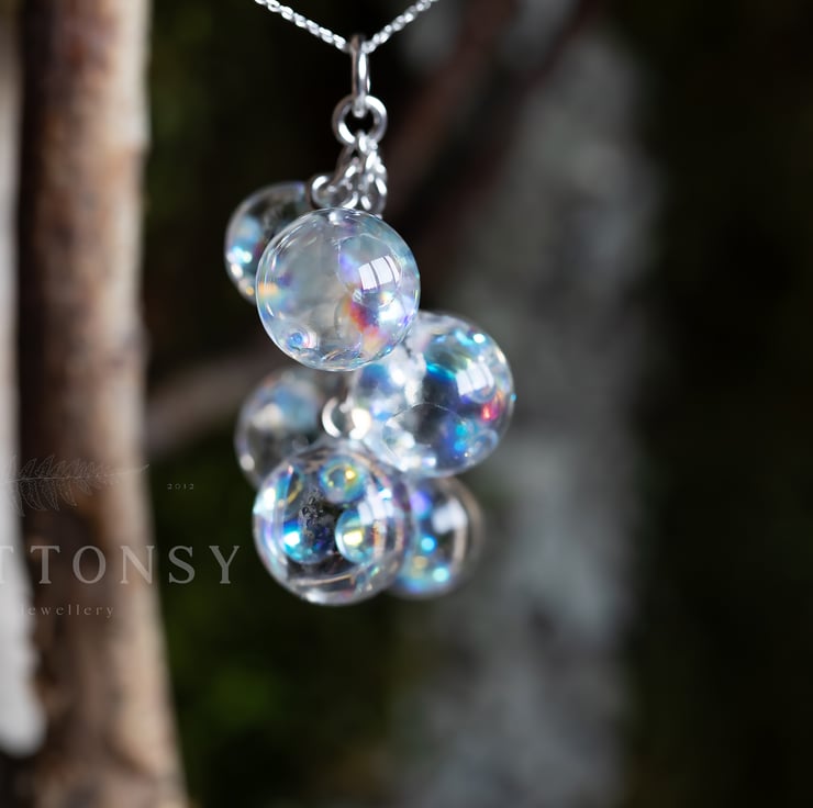 The bubbles component is around 5cm at full length, and comes on an 18" sterling silver chain.