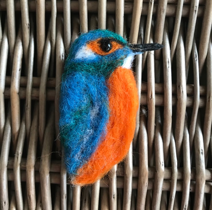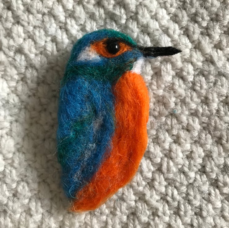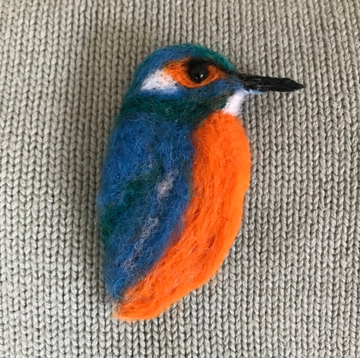 Needle felted kingfisher brooch . Colourful wearable art to brighten up a scarf or sweater.