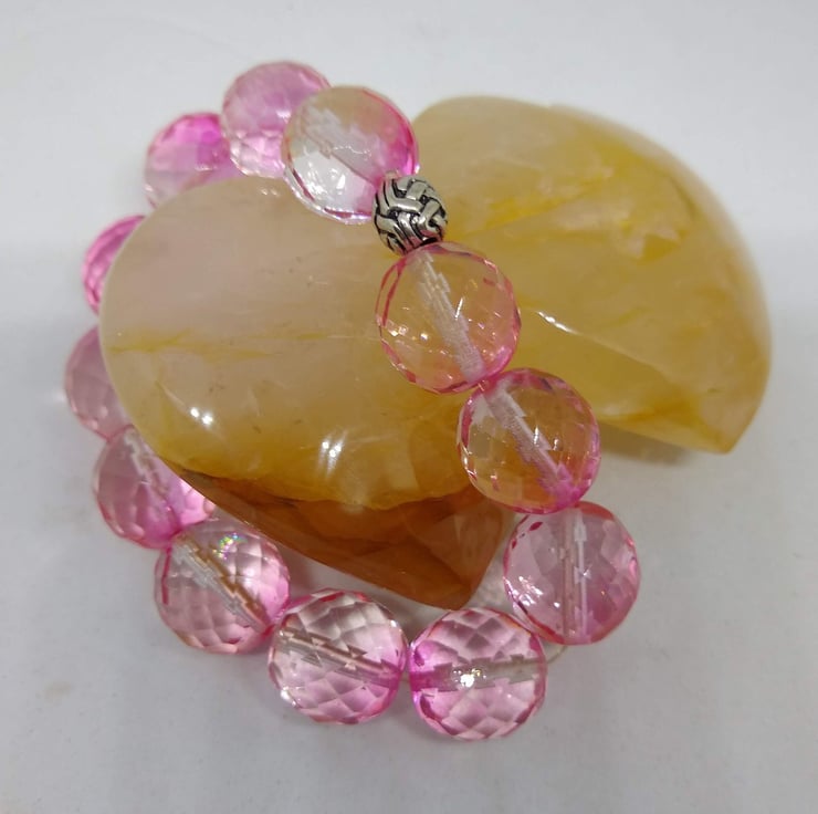 Strung on elastic with antique silver bead or crystal spacer bead detail