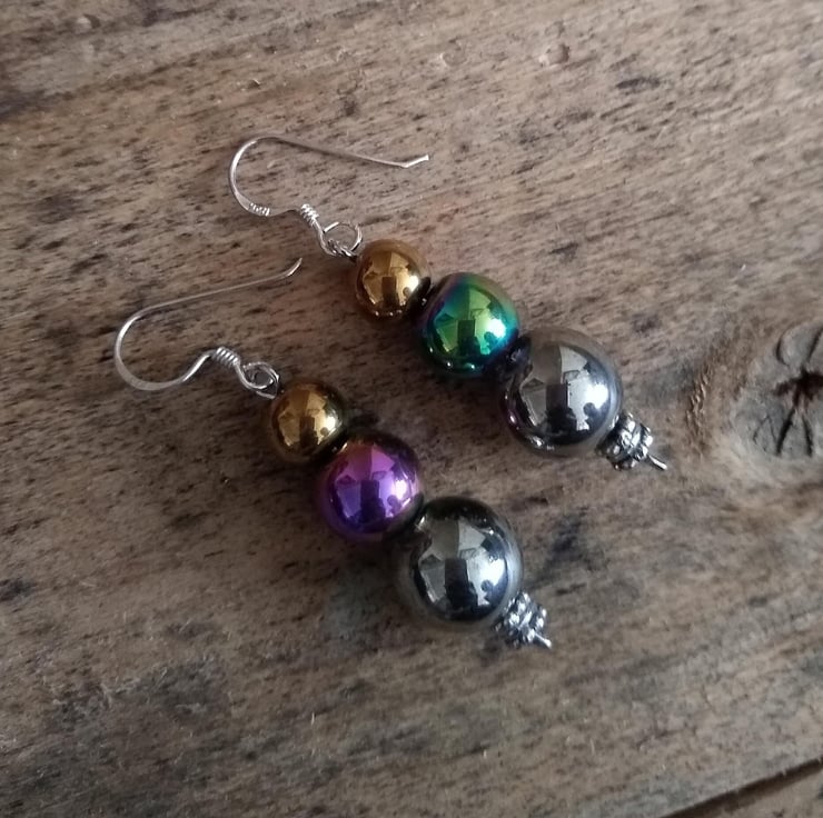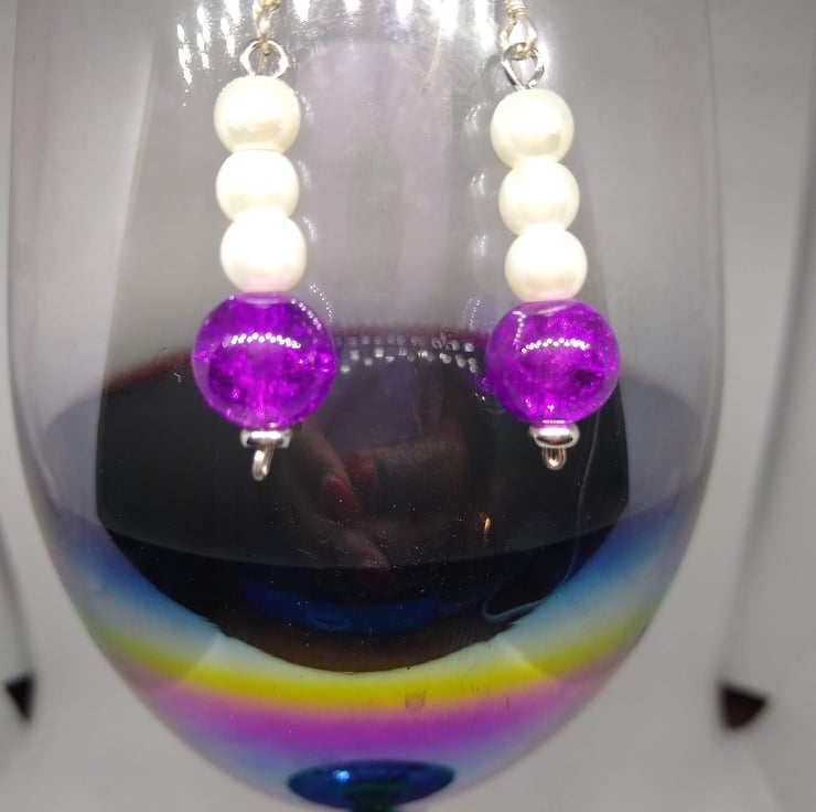 Handmade with silver earring hooks and various glass pearl beads