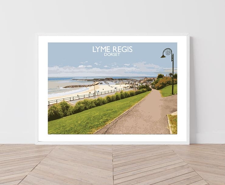 Devon is the spiritual home of Salty Seas but there are so many other gorgeous coastal destinations to visit as well. Dorset and its jurassic coast has some stunning coastline and stretches for miles. Lyme Regis is steeped in history and is a fantastic place to wander around with its independent shops and its amazing seafront with its beach huts and the cobb, which is always worth taking a walk on. Taken from original personal photographs, these vector illustrations have been designed with a carefully chosen colour palette that not only captures the essence of the coastal scenes but becomes a contemporary artwork that will suit any interior decor.