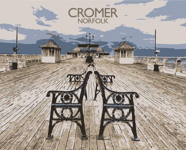 An original illustration of Cromer Pier in Norfolk.