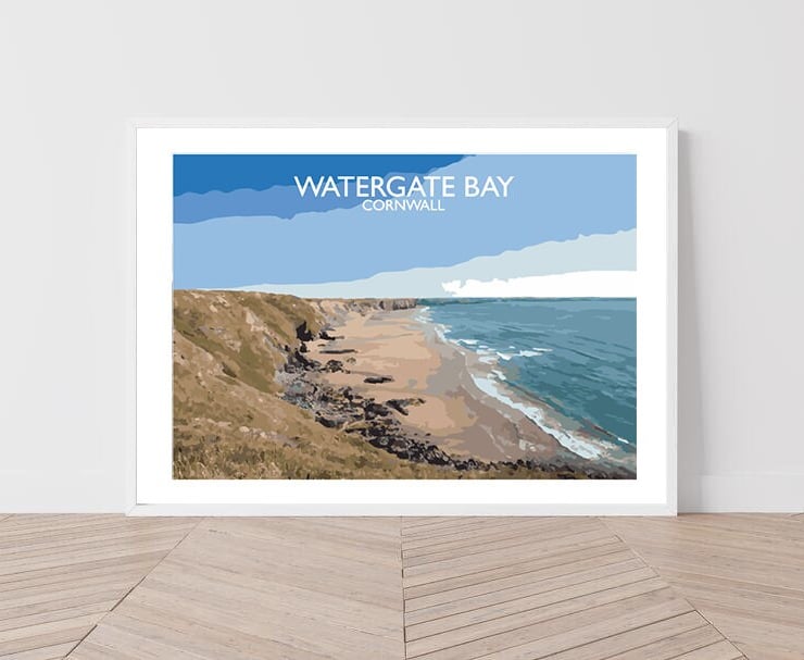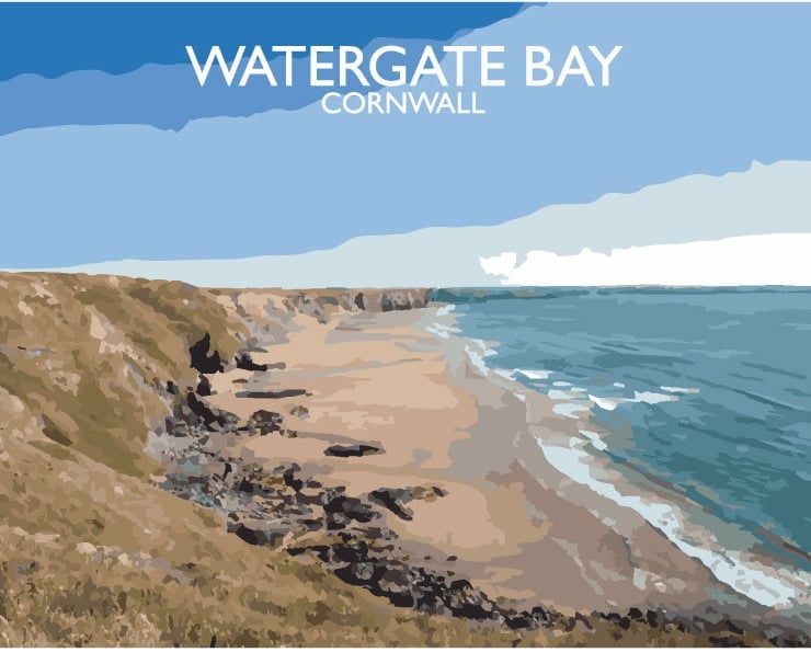 A characterful illustration of Watergate Bay in Cornwall.