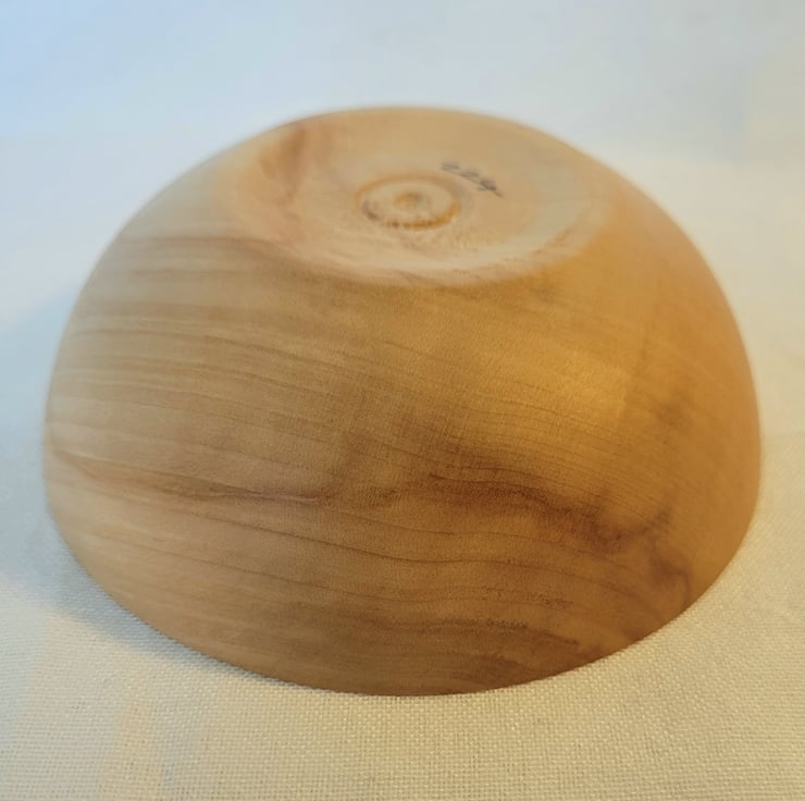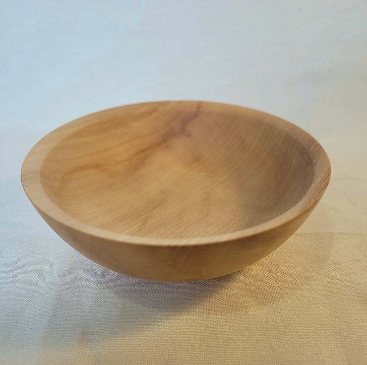 Coloured Horse chestnut bowl, 122 x 42mm (12.2 x 4.2cm) A nice little bowl in Horse chestnut, tightly curving with a narrow in sloping rim. Curving grain is overlaid with swirls in pink-brown tones. Great for nibbles, side dishes or ingredients when cooking.