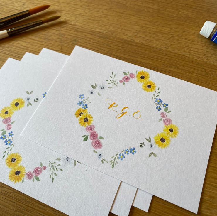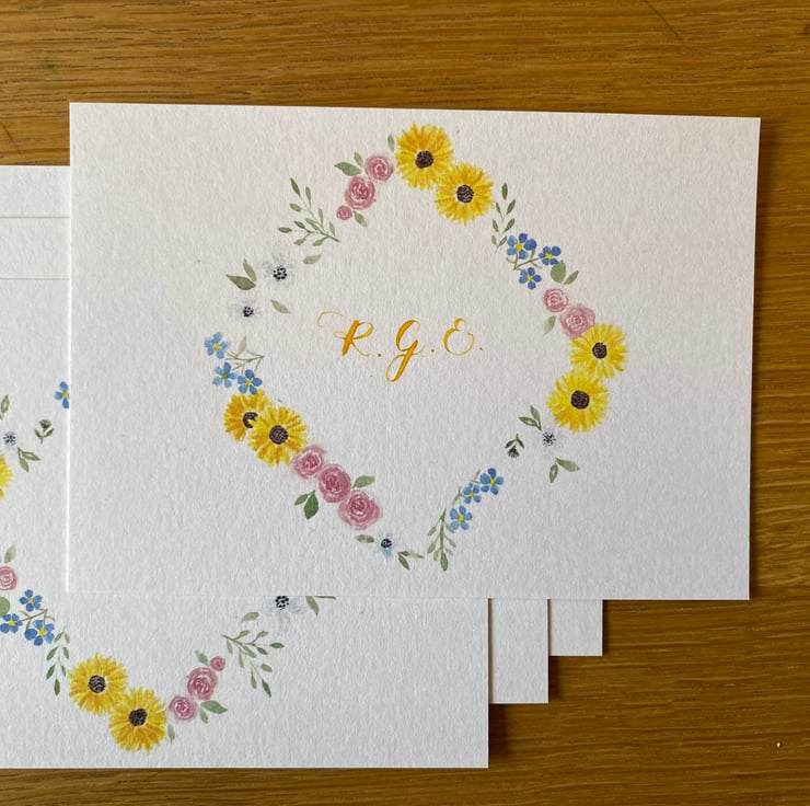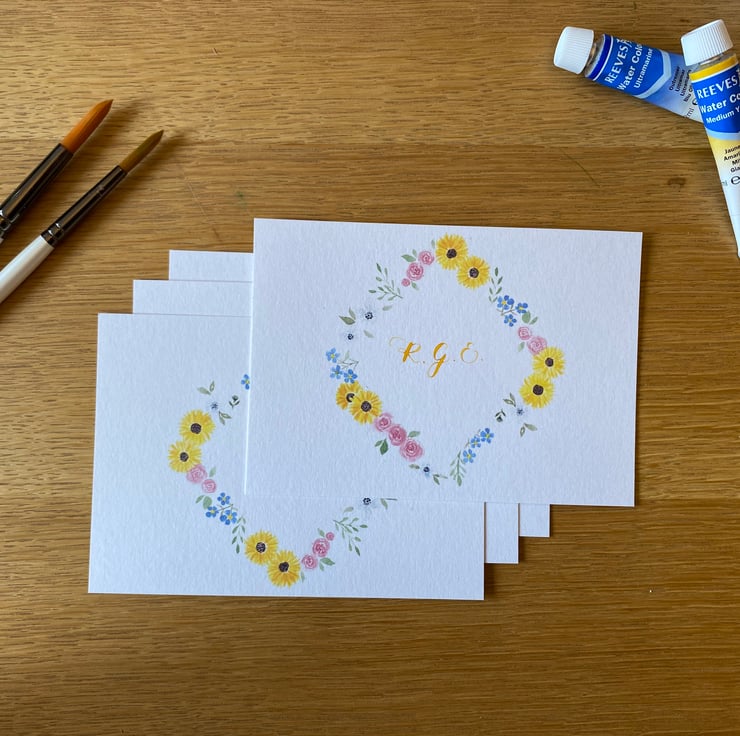 This is a set of 4 lovely A6 watercolour print notecards with personalised text. The watercolours are painted by me and then printed by a small company based on Leeds. They are printed on fully recycled and recyclable paper. They will be sent with 4 Kraft envelopes. The text can say anything and be any colour and I also offer a metallic finish option (although I usually use a watercolour that matches the print if not specified). If you don’t see the colour you want, please message me and I will see what I can do! The cards will be personalised horizontally, but can be done vertically, please state this with your personalisation.