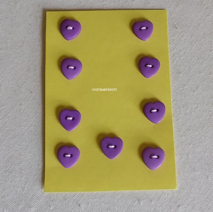 9 Purple heart plastic buttons.