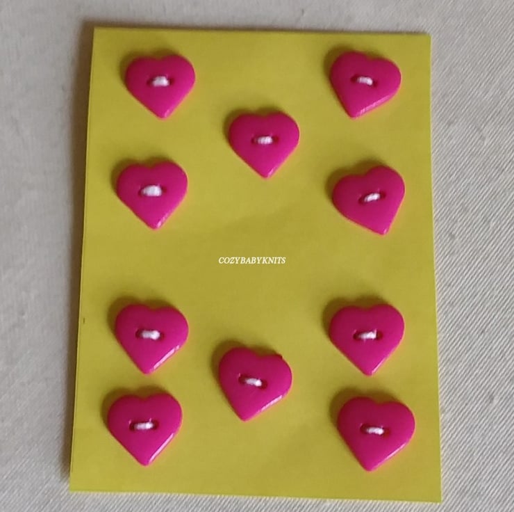 10 Cerise pink heart plastic buttons