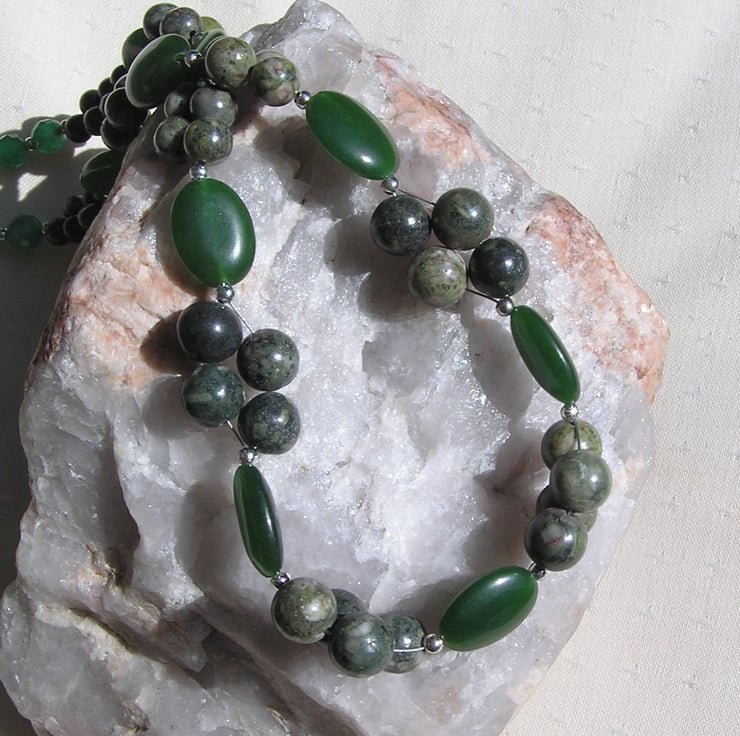 Nephrite Jade & Kambamba Jasper Gemstone Chunky Statement Necklace