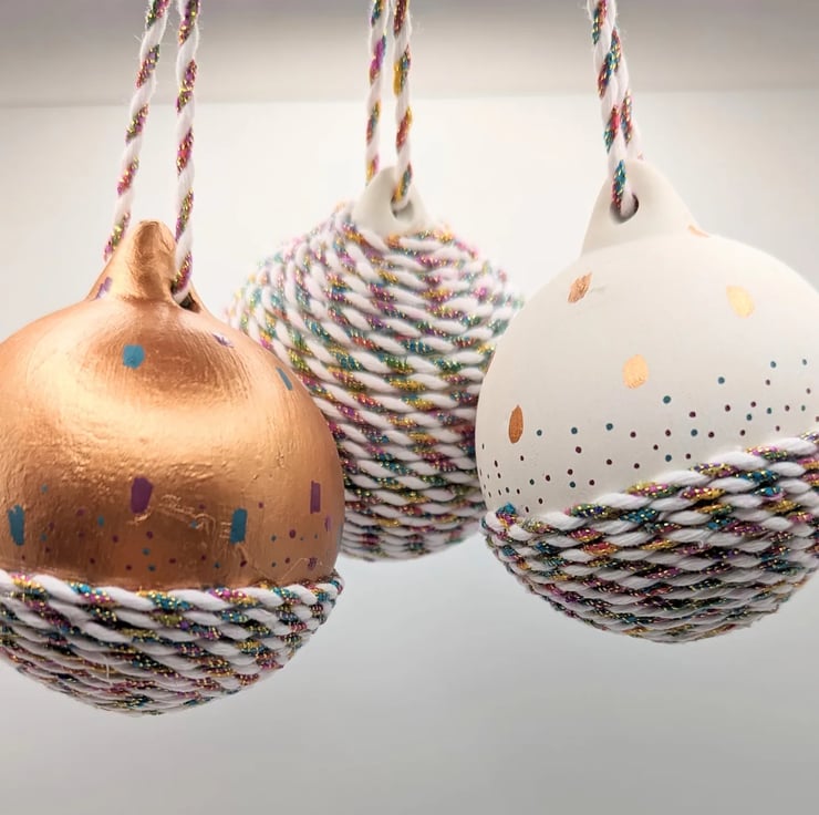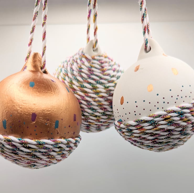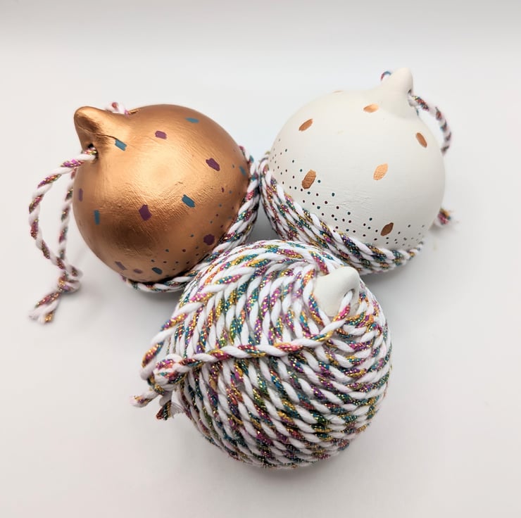Gorgeous ceramic baubles, hand decorated, painted. Set of 3.